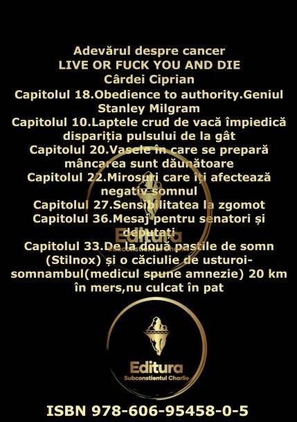 Comanda instant - Adevărul despre cancer LIVE OR FUCK YOU AND DIE